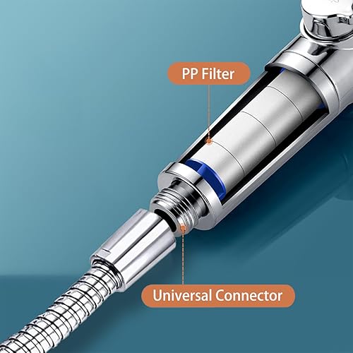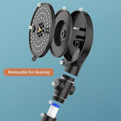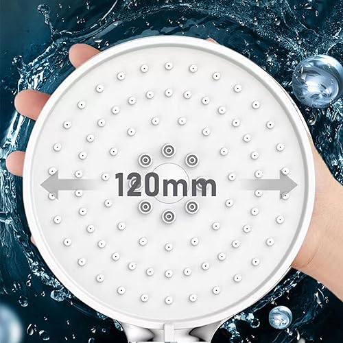 Pommeau de Douche Haute Pression, 12CM Grande Pomme de Douche Economie Deau avec Interrupteur de Stop, 5 Types de Jet Argent Douchette avec Filtre pour Bain SPA