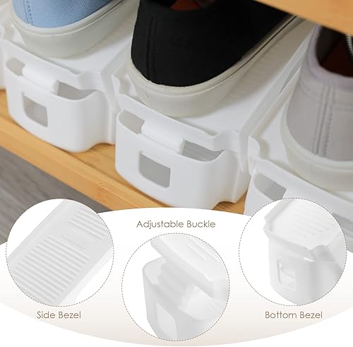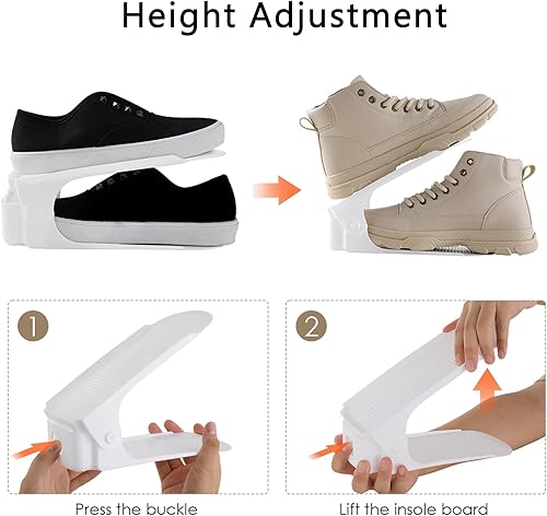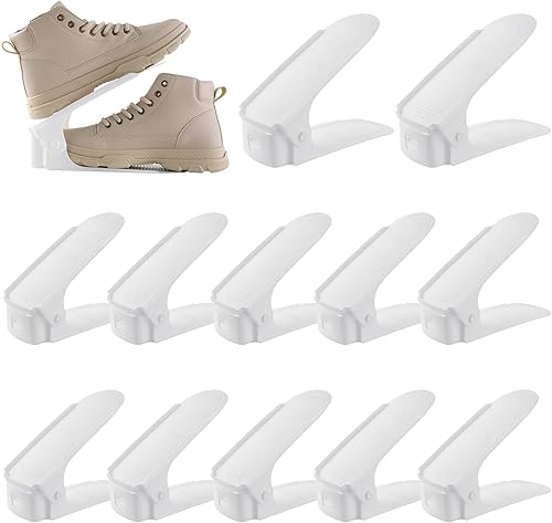 Arlopu 10PCS Support à Chaussures, Rangement Chaussures Gain de Place, Étagères à Chaussures, Organiseur de Chaussures en Matériau PP, Réglable, Antidérapante, 25 x 5,5 cm, Blanc