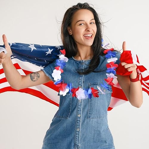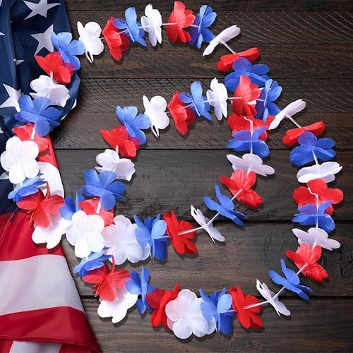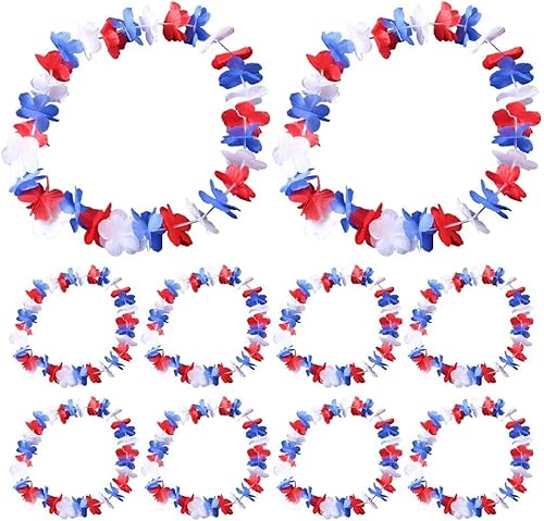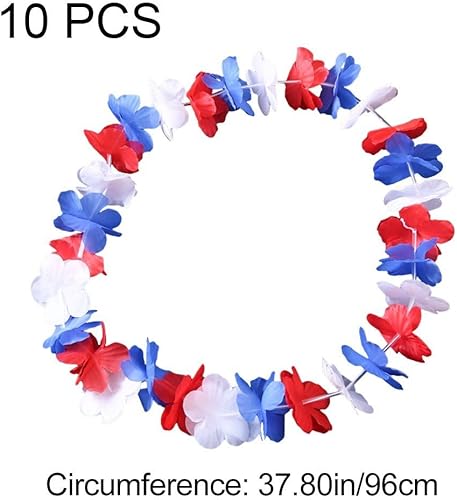 Wudaizhi Lot de 10 Guirlandes De Fleurs Rouges, Blanches Bleues, Décorations du 4 Juillet, Collier De Fleurs Luau Hawaïen, Cadeaux De Fête d'anniversaire pour Le Jour De L'indépendance