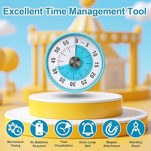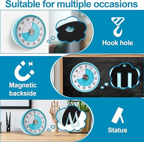 Hossom Visual Timer pour Les Enfants, 60 Minutes Compte à Rebours Mécanique Visual Timer avec Support Pliable, Aucune Pile n'est nécessaire, Cuisine Magnétique Minuteur pour Cuisine École Bureau