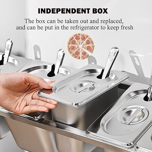 PP-Vic Conteneur Mural pour Ingrédients De Restauration, Conteneur pour Condiments À Pizza, Conteneur pour Ingrédients Alimentaires en Acier Inoxydable, Support pour Étagère À Épices,6 Grid