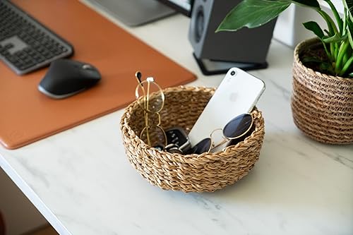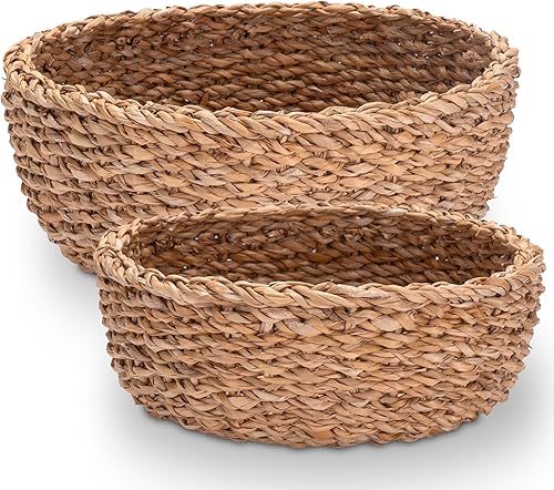 Decorasian Ensemble de corbeilles tressées en jonc de mer, paniers décoratifs ronds pour le rangement, diamètre : 30 et 25 cm
