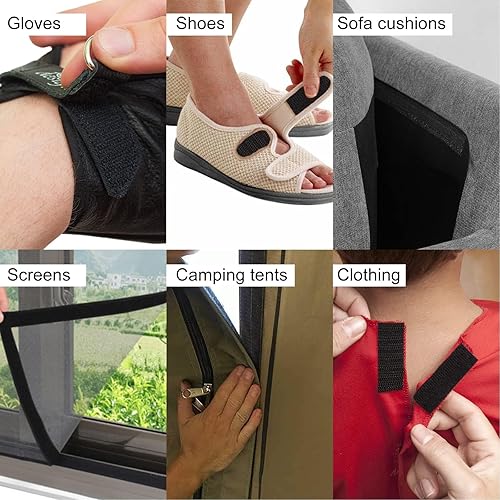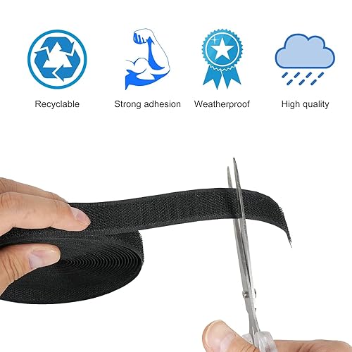 SCLLNDA Scratch Autocollant Double Face Noir Scratch a Coudre 10m Bande Scratch Adhésive 20mm Bande Agrippantes Adhésives Hook Loop pour Maison Bricolage Tissu Vêtements Câbles (Noir)