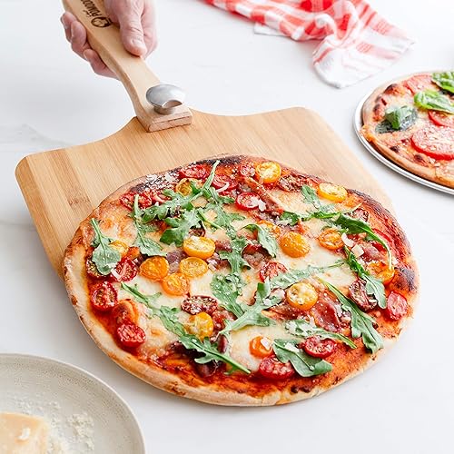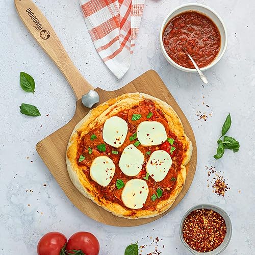Chef Pomodoro Pelle a Pizza en Bois (Bambou Naturel), Pelle Pizza Bois - Pelle à Pizza avec Manche en Bois Pliable, Parfait Comme une Planche a Pizza et Planche a Pain, 30x30 cm