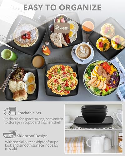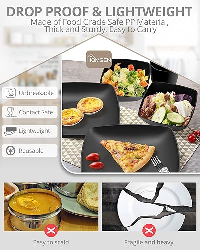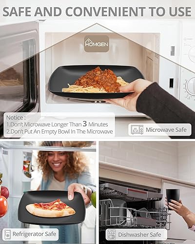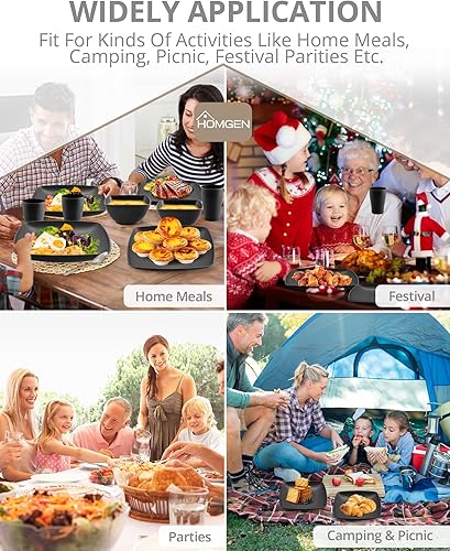 HOMGEN 12PCS Ensemble de Assiettes et Bols en Plastique Vaisselle de Camping Assiettes Réutilisables Léger et Empilable pour l’extérieur et la Maison -IP65 étanche Noir Lave-vaisselle micro-ondes