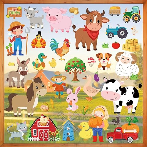 wondever Stickers Fenetre Enfant Animaux de la Ferme Autocollant Fenêtre Cheval Cochon Vache Coq Electrostatique Anti-Collision Décoration pour Printemps Été Vitre Stickers