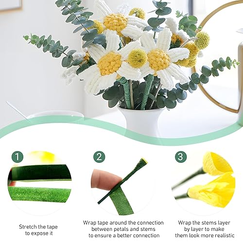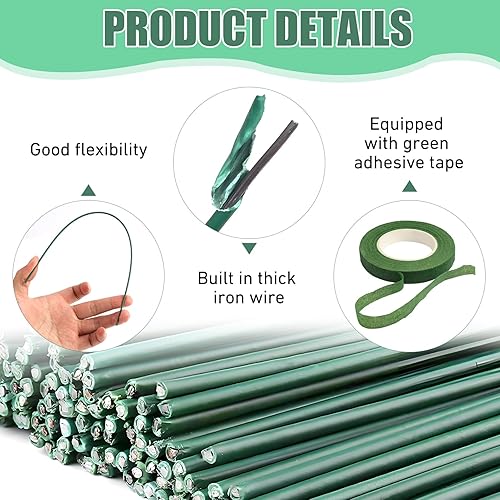 100 Pièces Tiges en Fil de Fer Vert pour Fleuriste 2mm et Ruban Adhésif Floral Vert, Fil de Fleurs 30 CM, des fils de Tiges Florales pour Arrangements Floraux, Artisanat, Décoration de Mariage