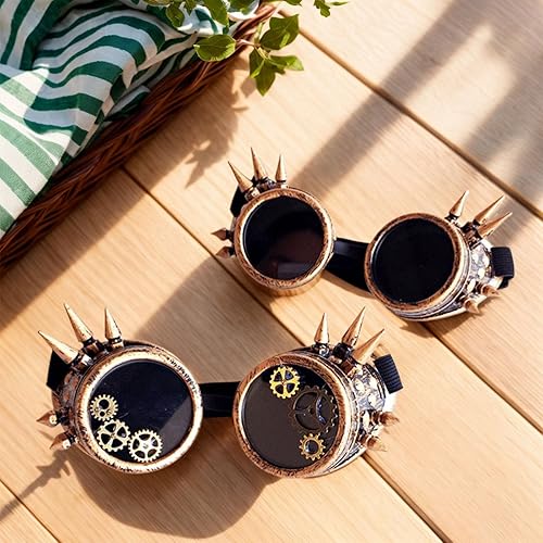 FackLOxc Lunettes Steampunks rétro avec rivets pour Halloween - Lunettes décoratives pour cosplay et amateurs