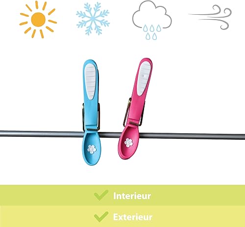 LAGUELLE - Lot de 48 Pinces à Linge Bimatière Extra Fortes – Coloris Assortis, 100% Recyclables, Fabriquées en France, Anti-UV & Protection Douce pour Le Linge - Fleur
