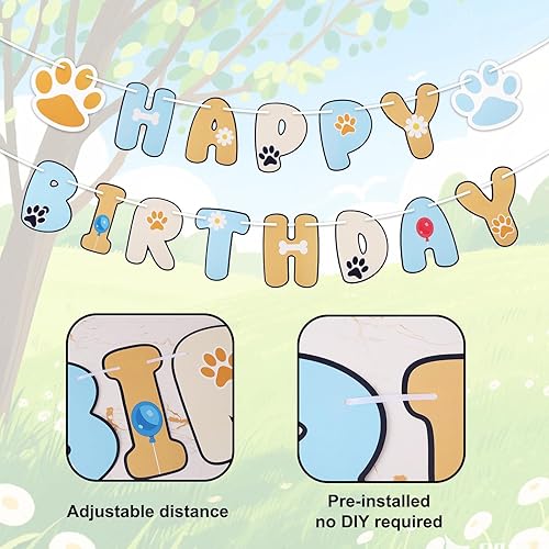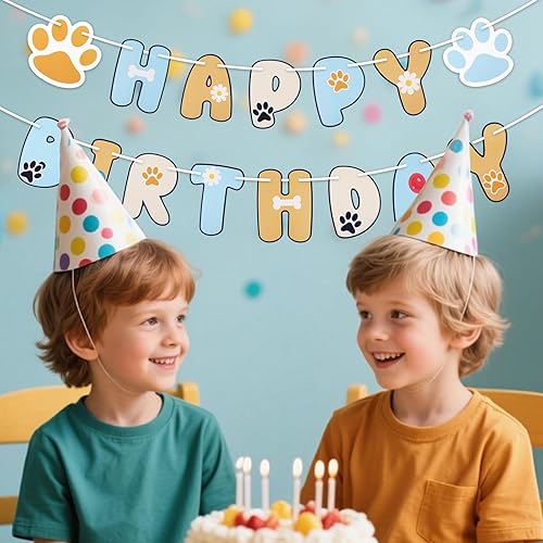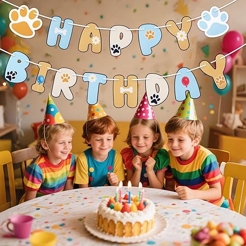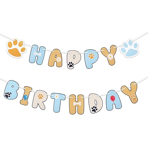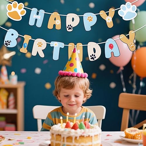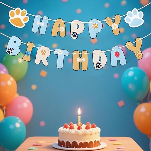 SAVITA Banderole Joyeux Anniversaire avec Motif de Patte et Guirlande Lettres pour Enfants Garçons et Filles Décorations de Fête d'Anniversaire sur le Thème du Chien Bleu