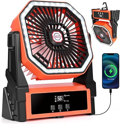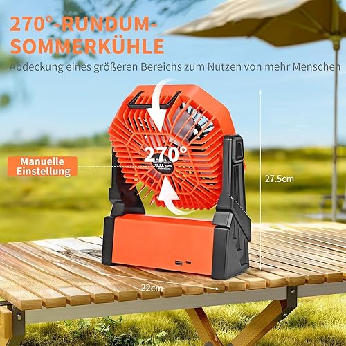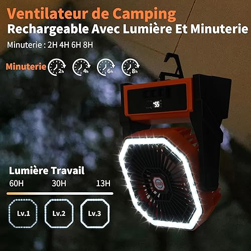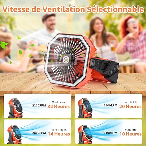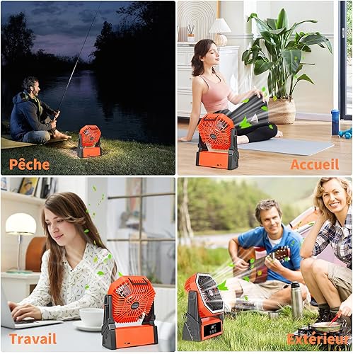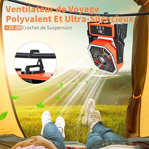 Ventilateur de Camping Ventilateur de Table Batterie Rechargeable 15000mAh Ventilateur de Table USB Silencieux avec LED Minuterie 4 Vitesses Ventilateur Camping Puissant pour Extérieur Intérieur