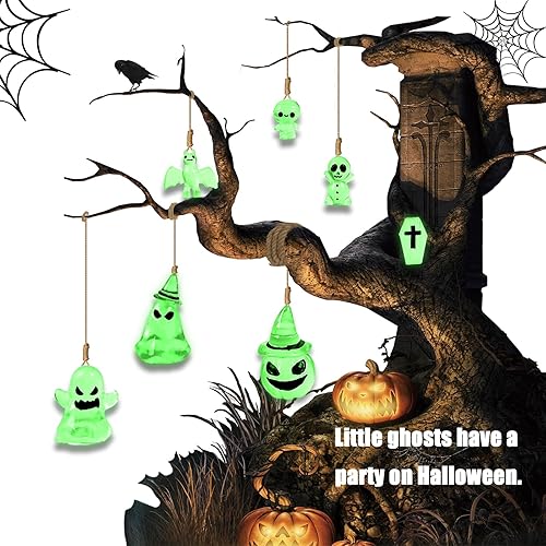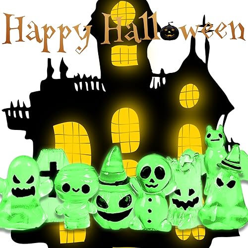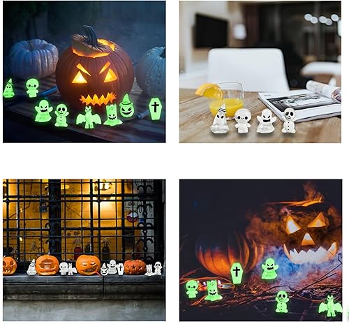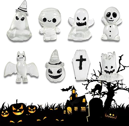 Décoration de jardin pour Halloween, 8Pcs Mini Glow Ornaments, Fantôme, Gobelins, Squelettes, Citrouille, Poupée, Décoration de jardin, Décoration d'Halloween