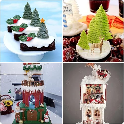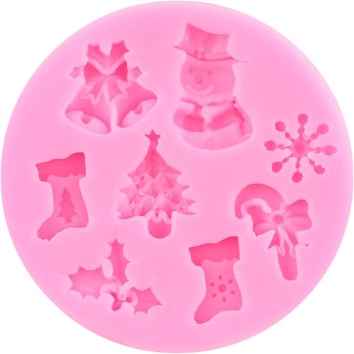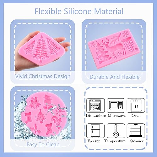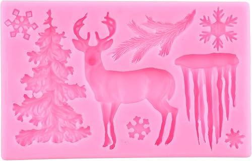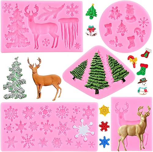 RFGHAC Lot de 5 moules en silicone pour gâteau de Noël, sapin de Noël, cerf, flocon de neige, élan, fête de la Reine des neiges, outils de décoration pour cupcakes, chocolat, bonbons, pâte à sucre,