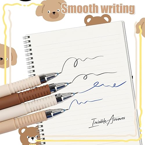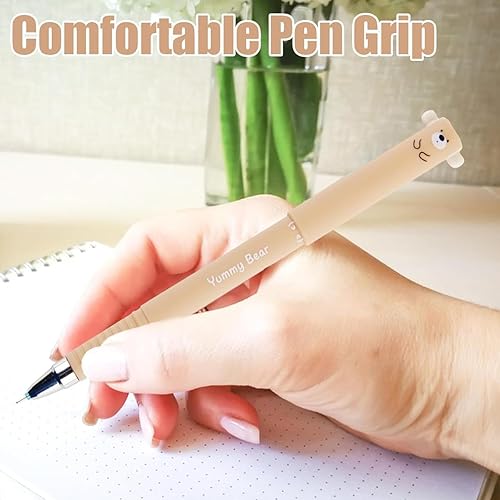 Stylo effaçable Ours, 4Pcs Erasable Neutral Pens 0,5 mm Stylos à Bille Cute Kawaii Pens, Confort d'écriture stylos à encre gel pour bureau école - Ours