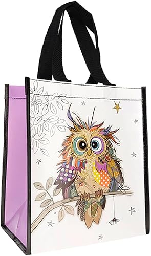 Cabas de courses en matière recyclée - motif jeune chouette des bois- format 30 * 26 cm avec épaisseur de 16CM