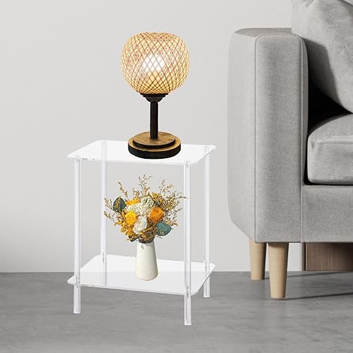 JISADER Petite table en acrylique, petite table de chevet transparente, avec compartiment de rangement, table d'appoint transparente, petite table en acrylique, 40 cm x 30 cm x 50 cm, pour salon,
