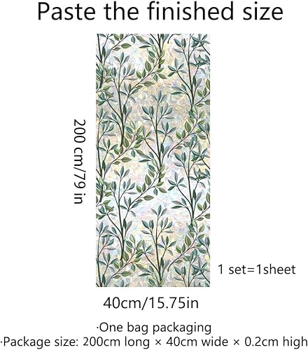 Runtoo Film d'intimité pour fenêtre - Feuilles de plantes arc-en-ciel - Autocollant décoratif 3D en vinyle pour vitrail - Non adhésif - 40 x 200,7 cm