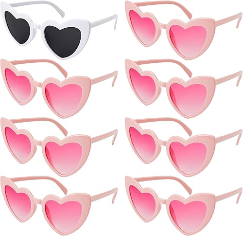 Annhao 8 Paires Lunettes de Soleil en Forme de Cœur, Lunettes EVJF, Lunette Coeur, Lunettes de Soleil Coeur, Accessoires EVJF pour Enterrement de Vie de Jeune Fille, Fêtes de Mariage, Voyage, Carnaval
