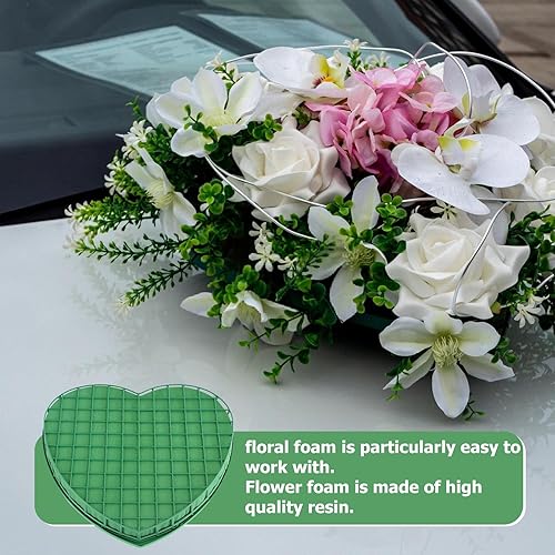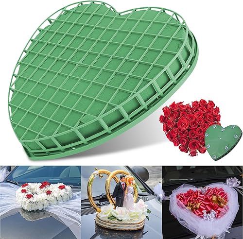 WEGREAT 30 x 32,5 cm Mousse à point de fleur en forme de cœur, grand cœur en mousse, mousse enfichable, pour fleurs fraîches avec grille, masse enfichable pour arrangements floraux pour décoration de