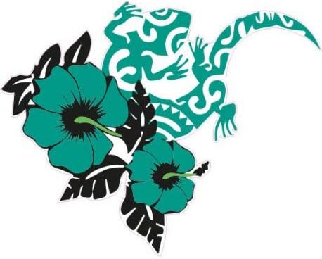 Salamandre hibiscus bleu autocollant sticker adhesif - Taille : 12 cm