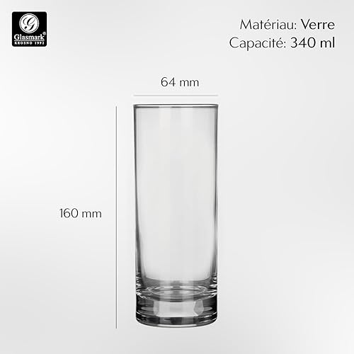 Glasmark KROSNO 1992 Lot de 4 s à boire pour long drink 340 ml s à eau s à jus s à cocktail à eau à fond épais Passe au lave-vaisselle