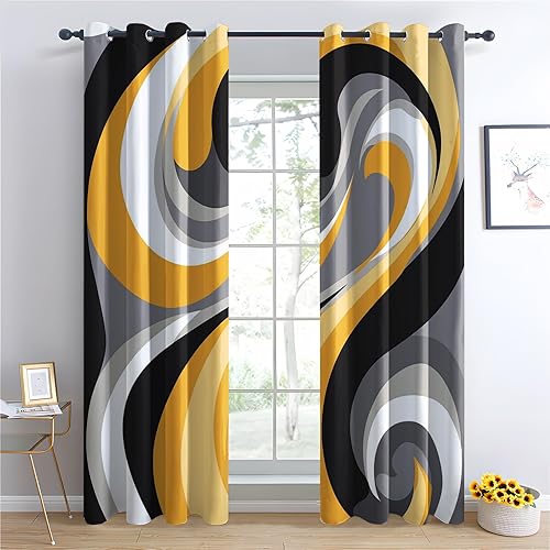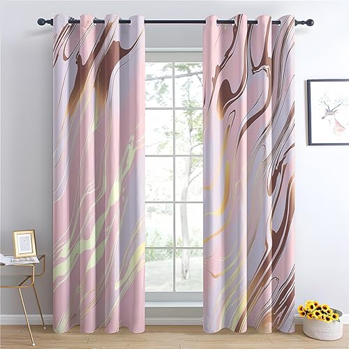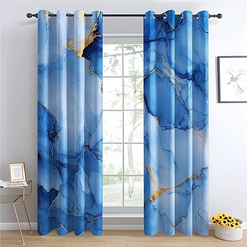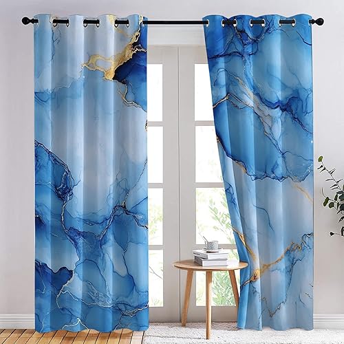 Luxfieo Rideau Occultant Marbre - Décoration Marbre, Rideau Thermique Motif Abstrait Bleu et Doré, Lot de 2 Rideaux Opaque à Oeillets pour Fenetre Chambre Salon, 75x166 cm (LxH) Q#122