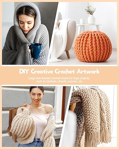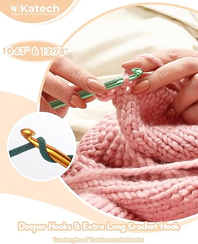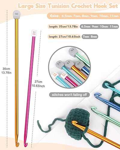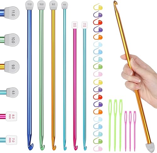 Katech 6 Pièces Grand Crochet Tunisien, Aiguilles 6,5mm-11mm, Longs Crochets Tunisiens, Kit Débutants Tricot Idéal pour Tapis, Couverture, Écharpe