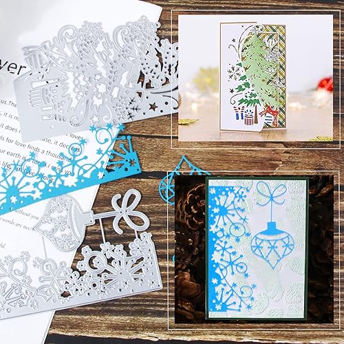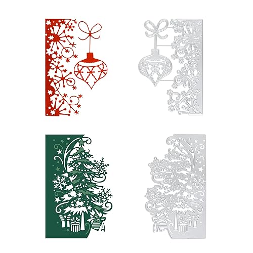 Lot de 2 Noël Matrice de Découpe Scrapbooking en Métal Pochoirs de Découpe Forme Sapin Lumières de Noël Fruits Suspendus Outil de Gaufrage Décoration DIY pour Papier Carte Craft Album Photo