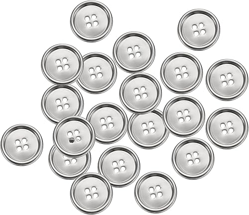 sourcing map Lot de 20 boutons à coudre ronds en métal de 12 mm à 4 trous pour costumes, chemises, manteaux, vêtements - Boutons à coudre pour décoration et loisirs créatifs - Argenté