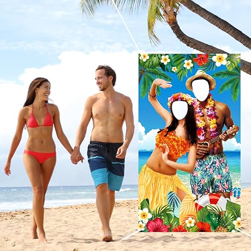 Sprinlot Décor de Photo Couple, Accessoire Photo Luau, Tissu Fond Hawaïen, Decoration Photobooth Aloha Hawaienne Tropical