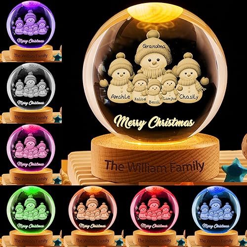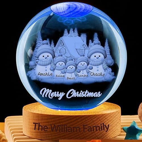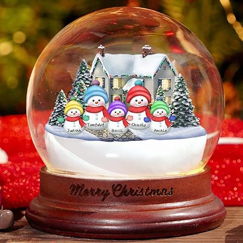 Boules à Neige de Noël Personnalisable,Boule de Noël Lumineuse avec Bonhommes de Neige Prénom Personnalisé,Veilleuse LED Decoration Noel Interieur Maison Cheminée pour Table,Idee Cadeau Noel