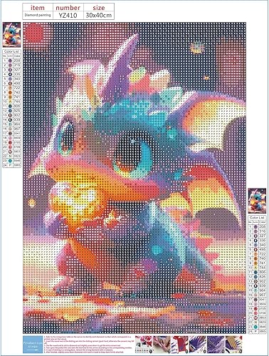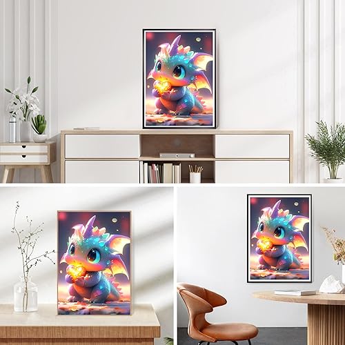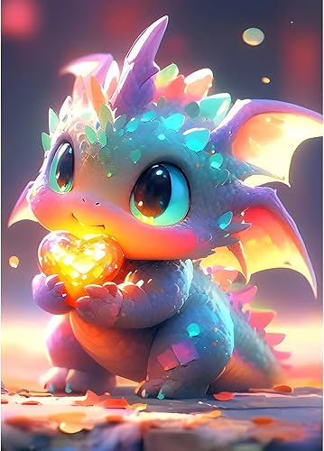 DPHERO 5D Bricolage Bébé Dragon Diamond Painting, DIY Broderie Dessin Animé Diamant Painting Kit Complet,Lumineux Peinture Diamant Artisanat Point de Croix Painting pour Adultes Débutants 30x40 cm