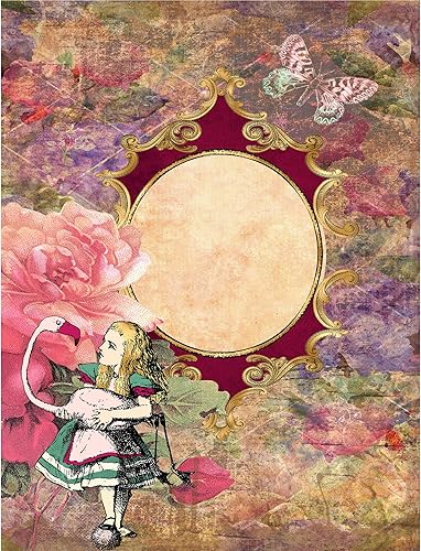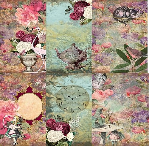 Alice Papier de riz mûrier 20,5 x 26,5 cm – 6 différentes images imprimées en papier de mûrier 30 g/m² fibres visibles pour découpage, travaux manuels, collage