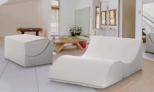 Talamo Italia - Lit pliant Andreina, Pouf transformable en lit simple, Méridienne en simili cuir, 100% Made in Italy, 130x50h50 cm, Blanc