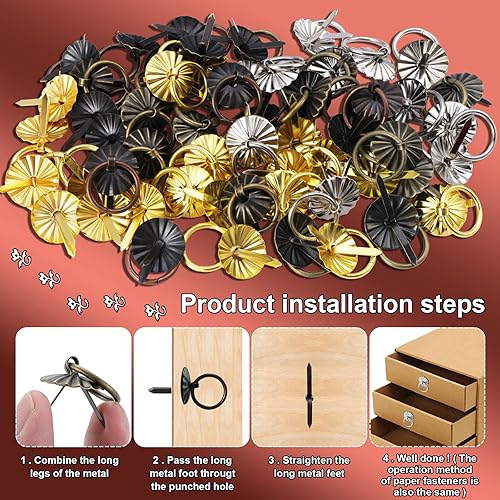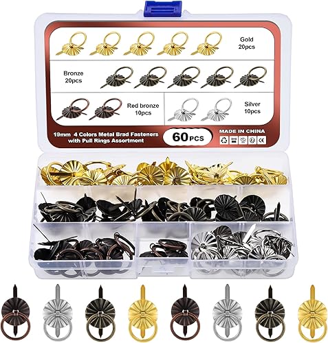 Faankiton Lot de 60 attaches en métal avec tirette Style antique Mini Attaches en papier Brad Scrapbook DIY Artisanat Accessoires décoratifs Cuisine et salle de bain Boîte à bijoux