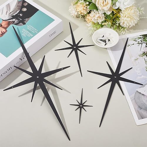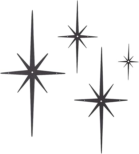 CREATCABIN 4 pièce Décoration Murale Métal Noir Style Étoile Moderne Milieu Siècle Sculpture Rétro 8 Branches Étoiles Atomiques Décoration Céleste Suspendre pour Maison Chambre Bureau Ou Salle Bain.