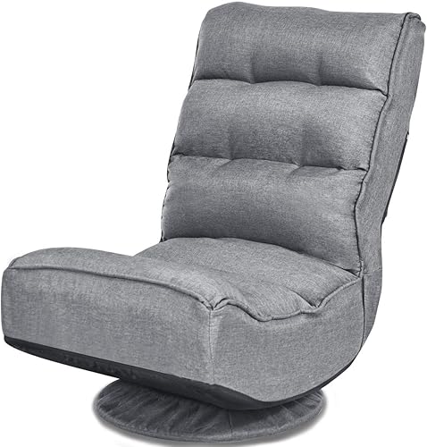Giantex Fauteuil de Sol Pliable Pivotant à 360 °, Chaise de Sol Dossier Réglable à 5 Niveaux, Fauteuil Inclinable de Méditation pour Lecture, Jeu, TV (Noir)