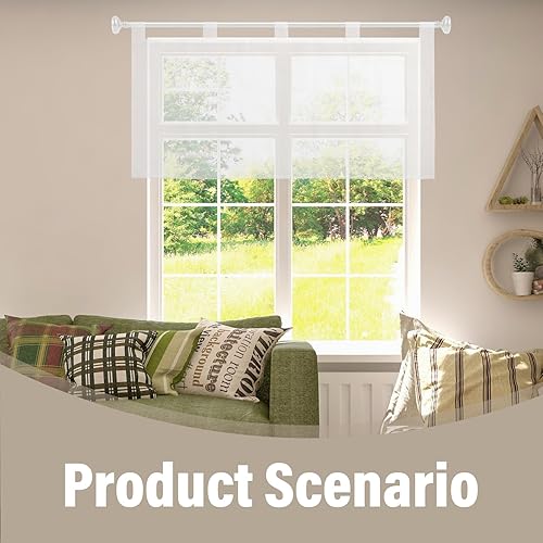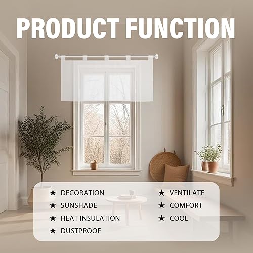 KUEEA Gardinette Moderne pour Les Fenêtres de Cuisine, Rideau de Vitre avec Boucles, Aspect de Rideau de Bistrot, Semi-Transparent, HxL 45x90cm
