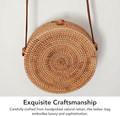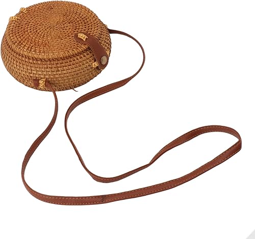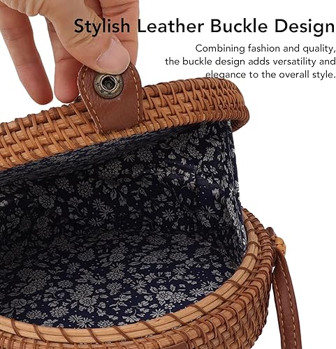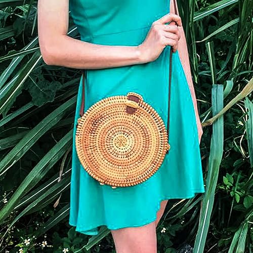 Mumusuki Sac Rond en Rotin tissé à la Main, Sac à Bandoulière de Plage Tropicale avec Sac à Bandoulière en Cuir de 20 Cm de Diamètre pour les Idées de (Ovale de couleur