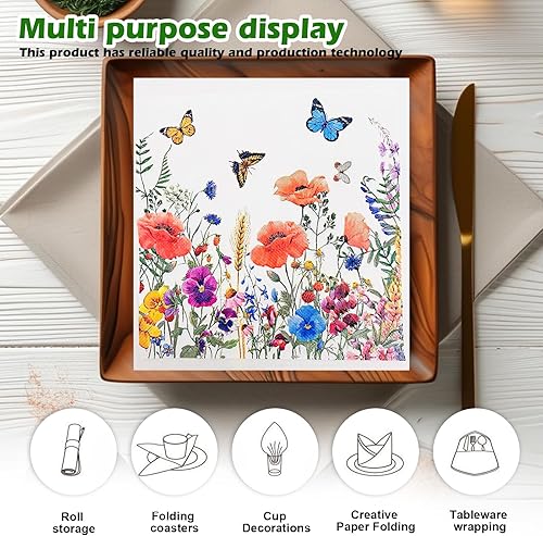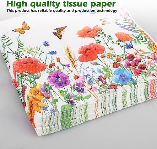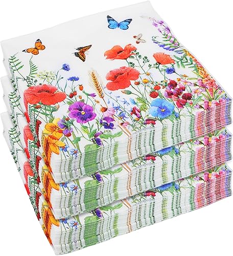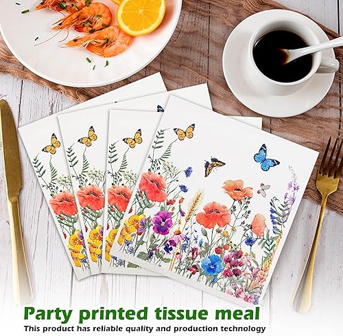SPORWAY Lot de 120 serviettes en papier, motif de fleurs et papillons, décoration de table pour fête, 33 x 33 cm