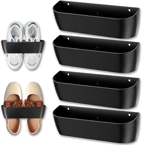 OYIWINMI Lot de 4 porte-chaussures muraux pour camping-car, étagère à chaussures murale avec autocollant et perçage, porte-chaussures, étagère à chaussures pour camping-car, camping, salle de bain