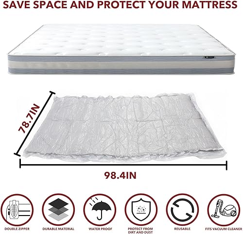 Sac sous vide pour matelas Queen/Full/Full XL pour le déménagement et le rangement, sac de compression sous vide pour matelas Queen et Full Size, sac de rangement robuste pour matelas, avec clip