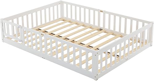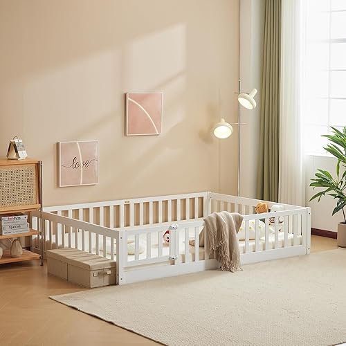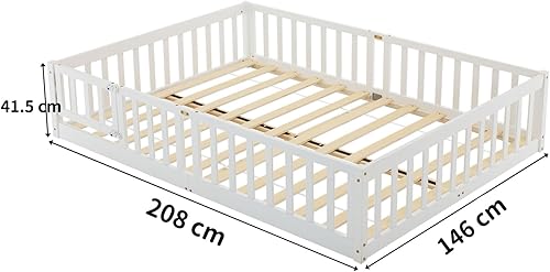 Bonnlo Lit Enfant 140x200, Lit Montessori au Sol Enfant en Bois, pour Chambres d'enfants, pour garçon et Fille,Blanc