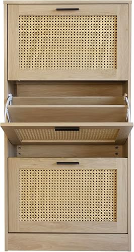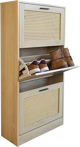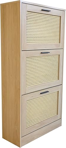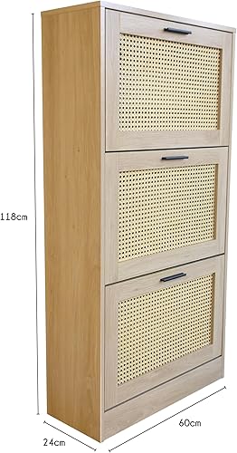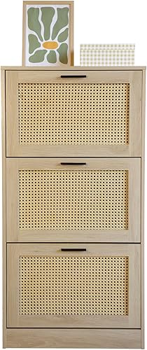 Box and Beyond - Meuble à Chaussures en Cannage, 3 Tiroirs, Rangement 18 Paires, Style Moderne