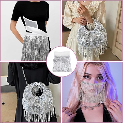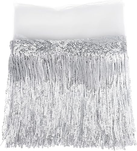 Salbsever Bordure à franges en dentelle à paillettes argentées pour bricolage, robe, couture, artisanat, décoration d'intérieur, robe de fête, costume de scène, 4,6 m, argenté