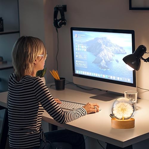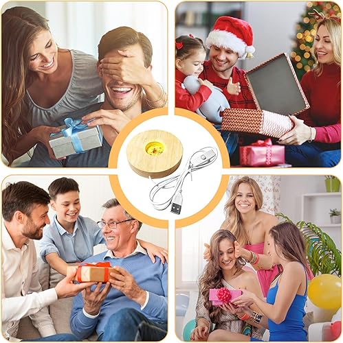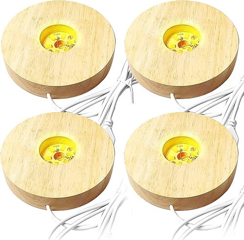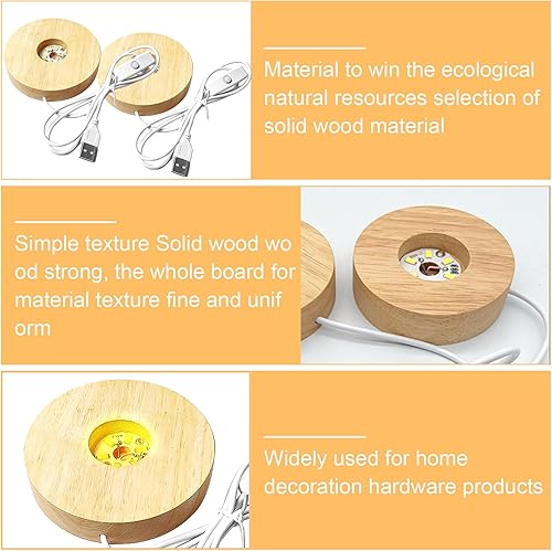 GAOUTO Lot de 4 socles LED en bois - 3 couleurs - Éclairage en bois réglable - Support USB rond pour affichage en cristal, verre, acrylique, bijoux en résine
