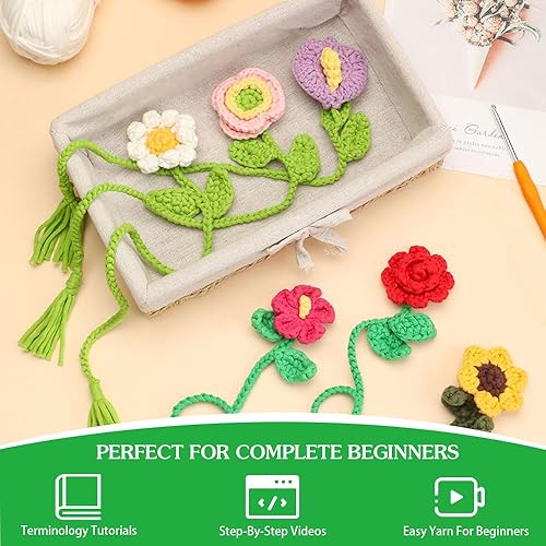 FDEETY WaldyWop Kit de crochet pour débutants, adultes et enfants, avec fil à crochet facile, crochets, motifs de marque-pages et tutoriels vidéo, cadeaux de bricolage pour femmes et filles