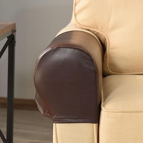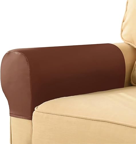 LINGXIYA Lot de 2 housses d'accoudoir de canapé, épaisses et imperméables en cuir synthétique pour chaises/canapés, housses extensibles pour la protection de meubles, marron