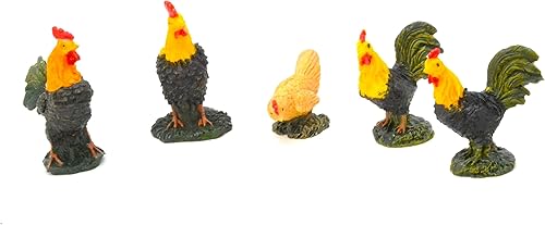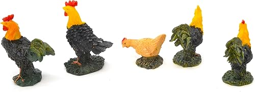 5 poules et coqs. Poulets figurines de Noël 6 cm. Set de Scène de Nativité, Figurines. Animaux, Naissance de Jésus. 3 rois. métiers Bethléem, Dieu. Accessoires pour modèles à l'échelle