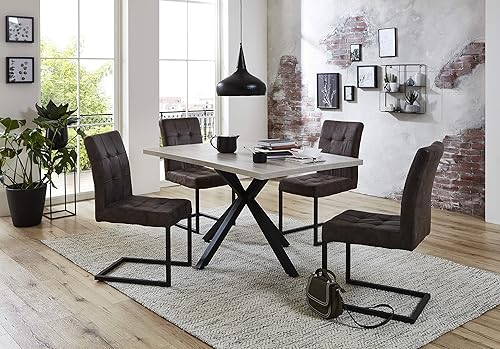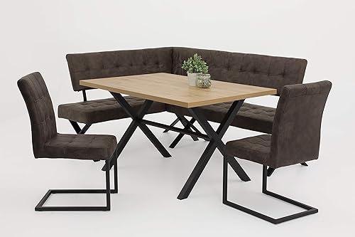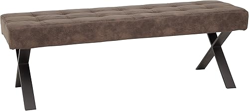 Hela Tische, Donna Banc De Salle À Manger, Avec Dossier, Revêtement Softex D’aspect Rétro Marron, Pieds Métalliques En X Anthracite, 140 x 61 x 93 cm